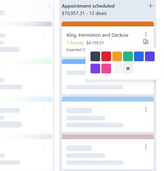 - Drag and drop board with ability to add custom cards colors per deal